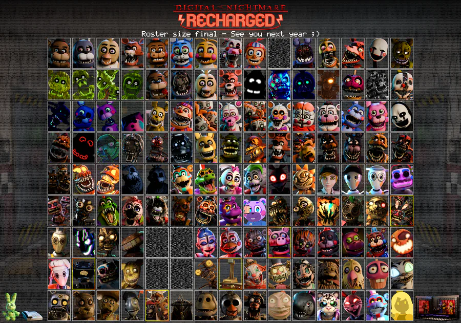 Taking things a bit slower, today's new cast reveals are Withered Bonnie, Withered Chica, Phantom Mangle, Glamrock Chica, and Ruined Monty.