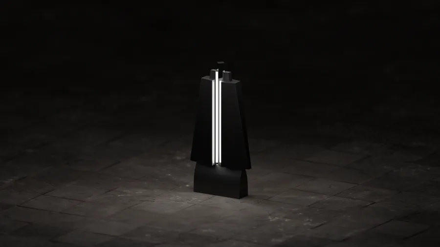 A monolithic lamp concept focused on strong silhouette and contrast.