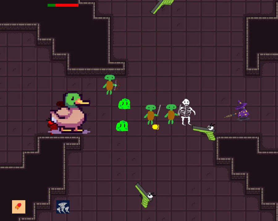 Made a free to play, top-down, roguelike for my CS Capstone project! Its called WandQuest available to play on any PC browser here: https://ice2water.itch.io/wand-quest-v1