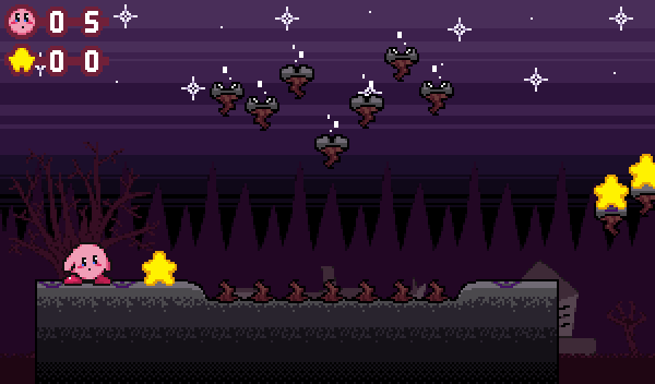 I actually made the fully pixelated version of that Kirby dream I had before making the drawn side so here's that + the pixelated background as a whole