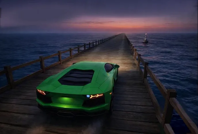 Loading...GTA In Green Lamborghini car In Infinite Bridge ASMR