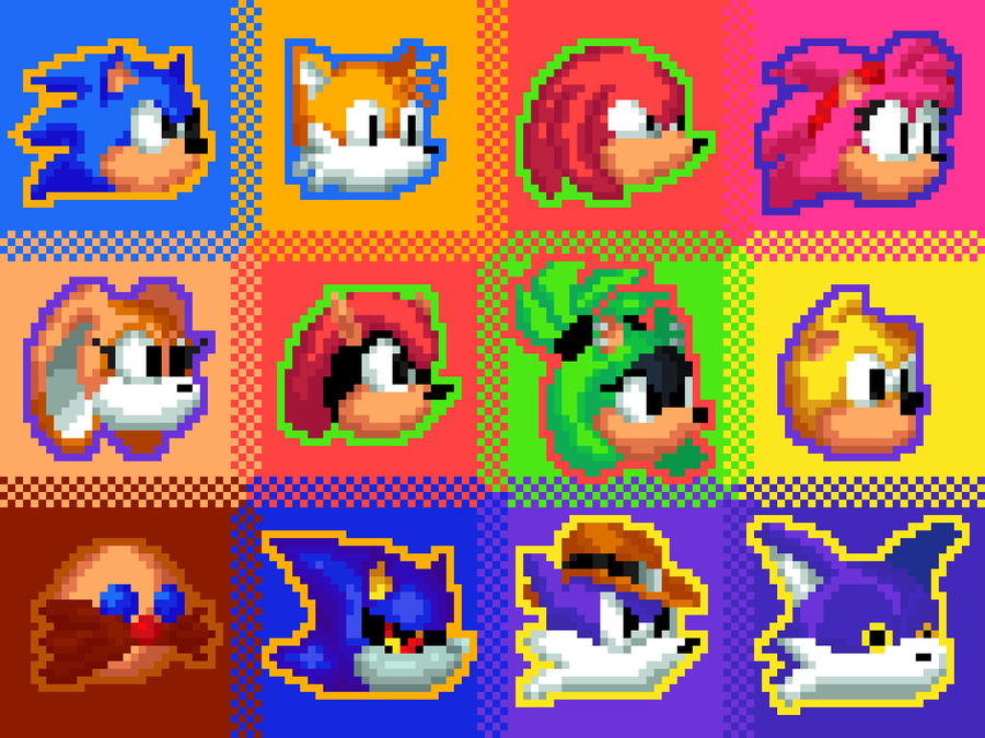 pixel art i made with a bunch of members of the classic sonic cast(+Surge, Cream and Big).