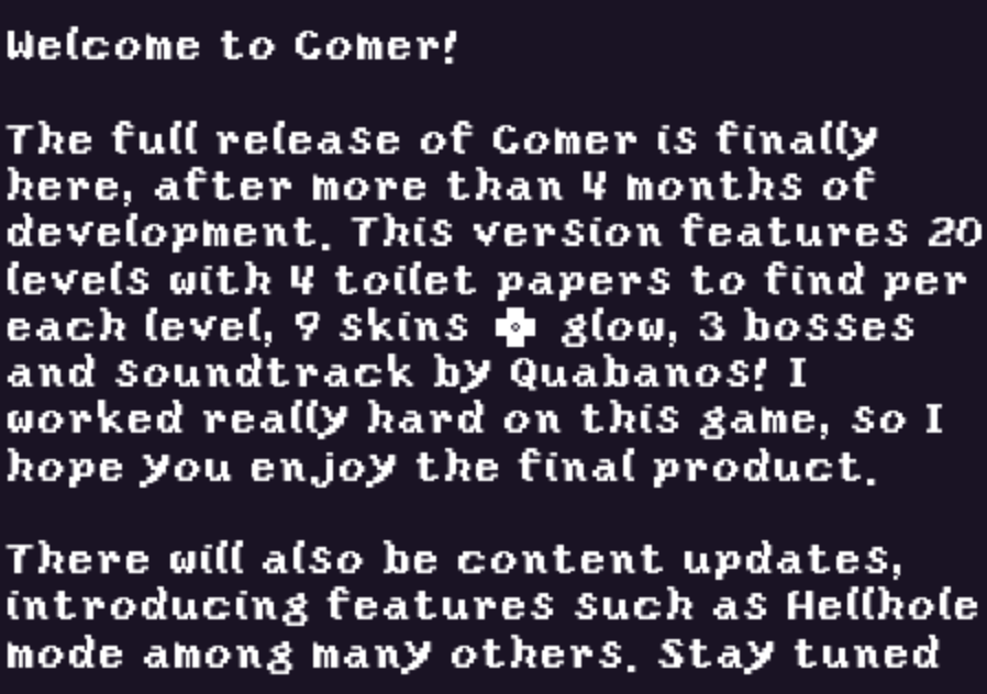 Thanks to @crimeraaa for giving me early access to full version of Comer