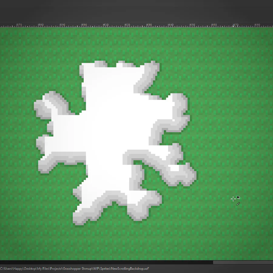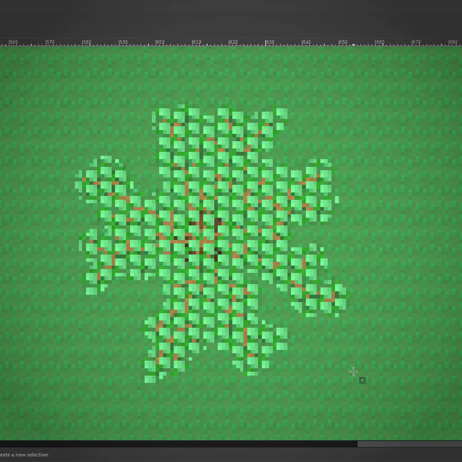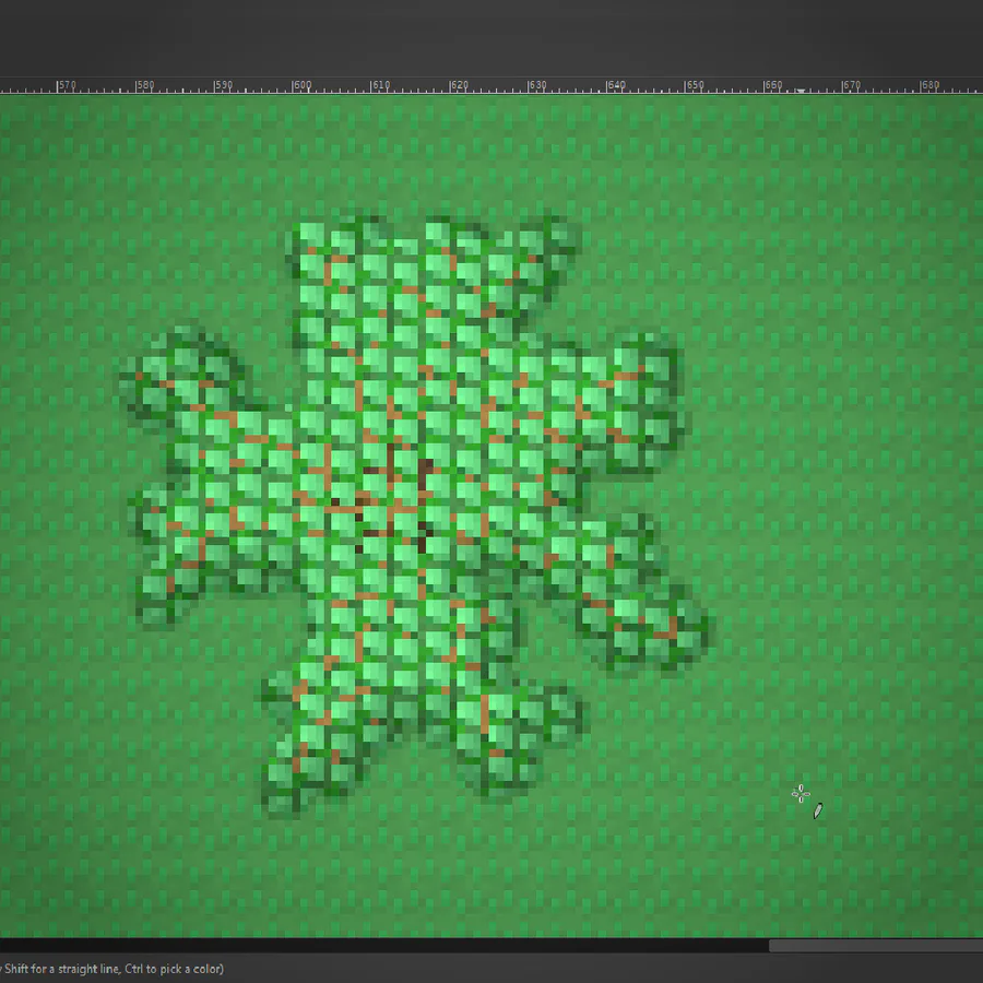 I've worked out a process for drawing bushes that I'm using for the backdrop! First I draw the branches, then "paint" where the bush texture will be, copy it's alpha to a new layer in white, then draw it's shadows in a layer over the bush layer.
