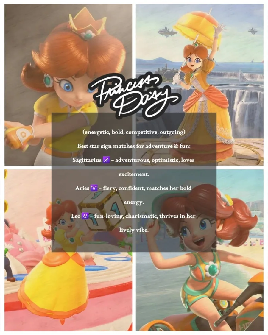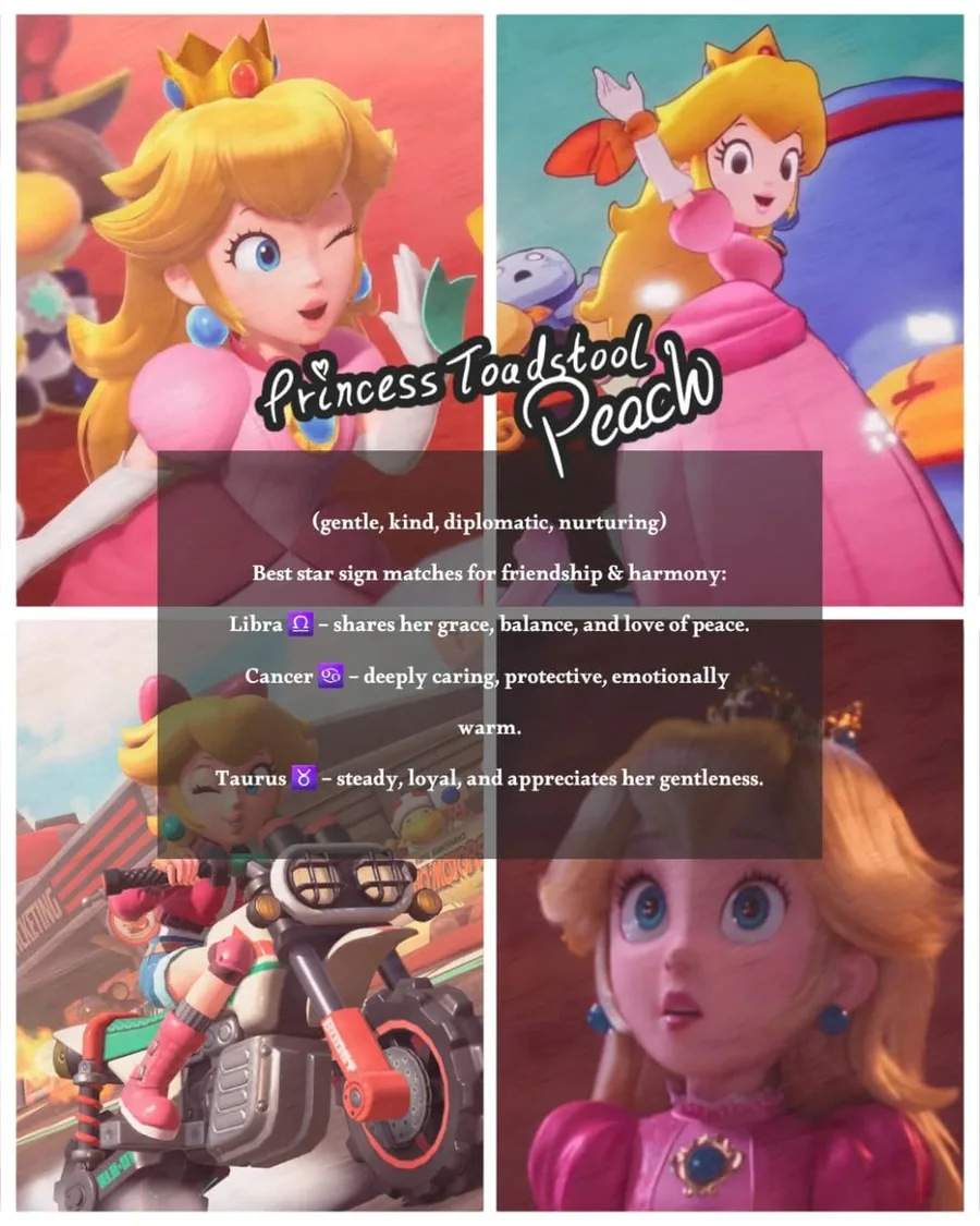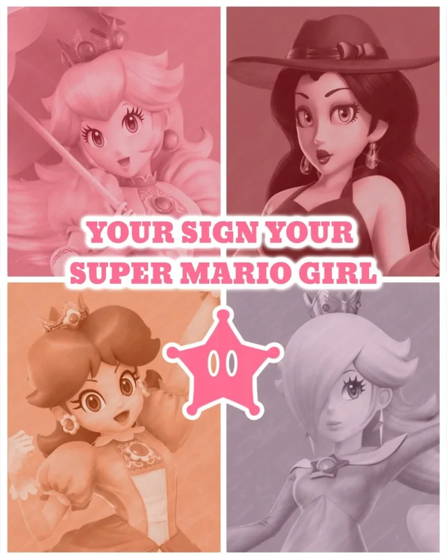 Your sign, your Super Mario girl ✨❤️🎙️💋✨🩵👑⭐✨💛👑🌼✨🩷👑🍑