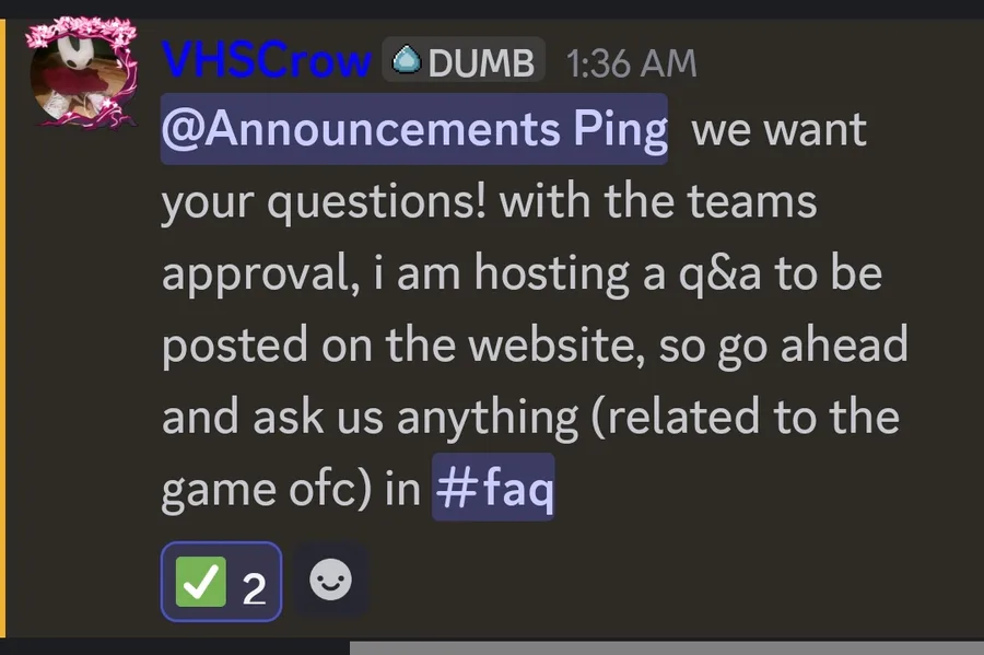 (on the game's discord server, not the team's)