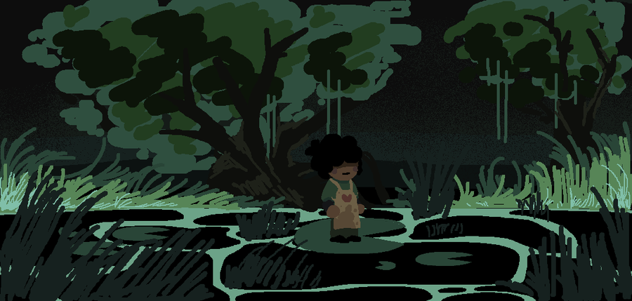A marsh environment in between the ruins and waterfall, harboring illusions and things that aren't as they seem