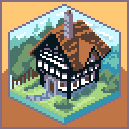 A lil mock tudor house done in #dotpict for one of their prompts.