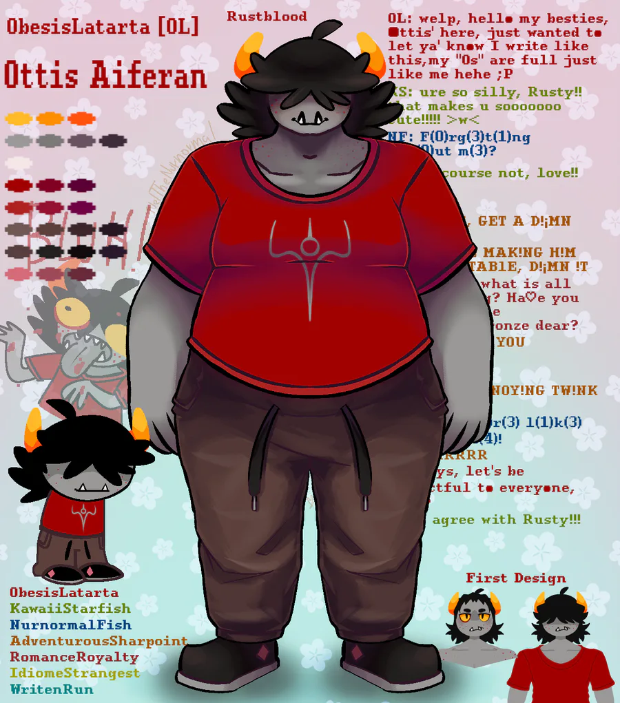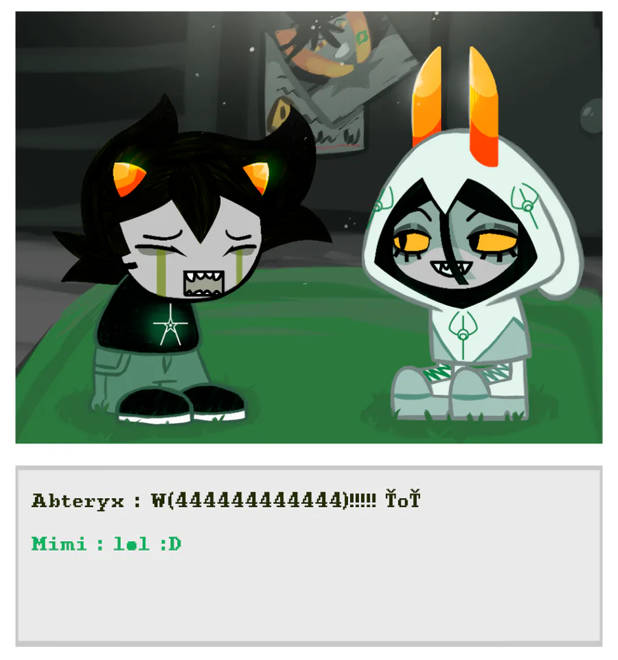 Abter is a limeblooded troll, he's 6'5 (13 y.o), he has lesbian parents.