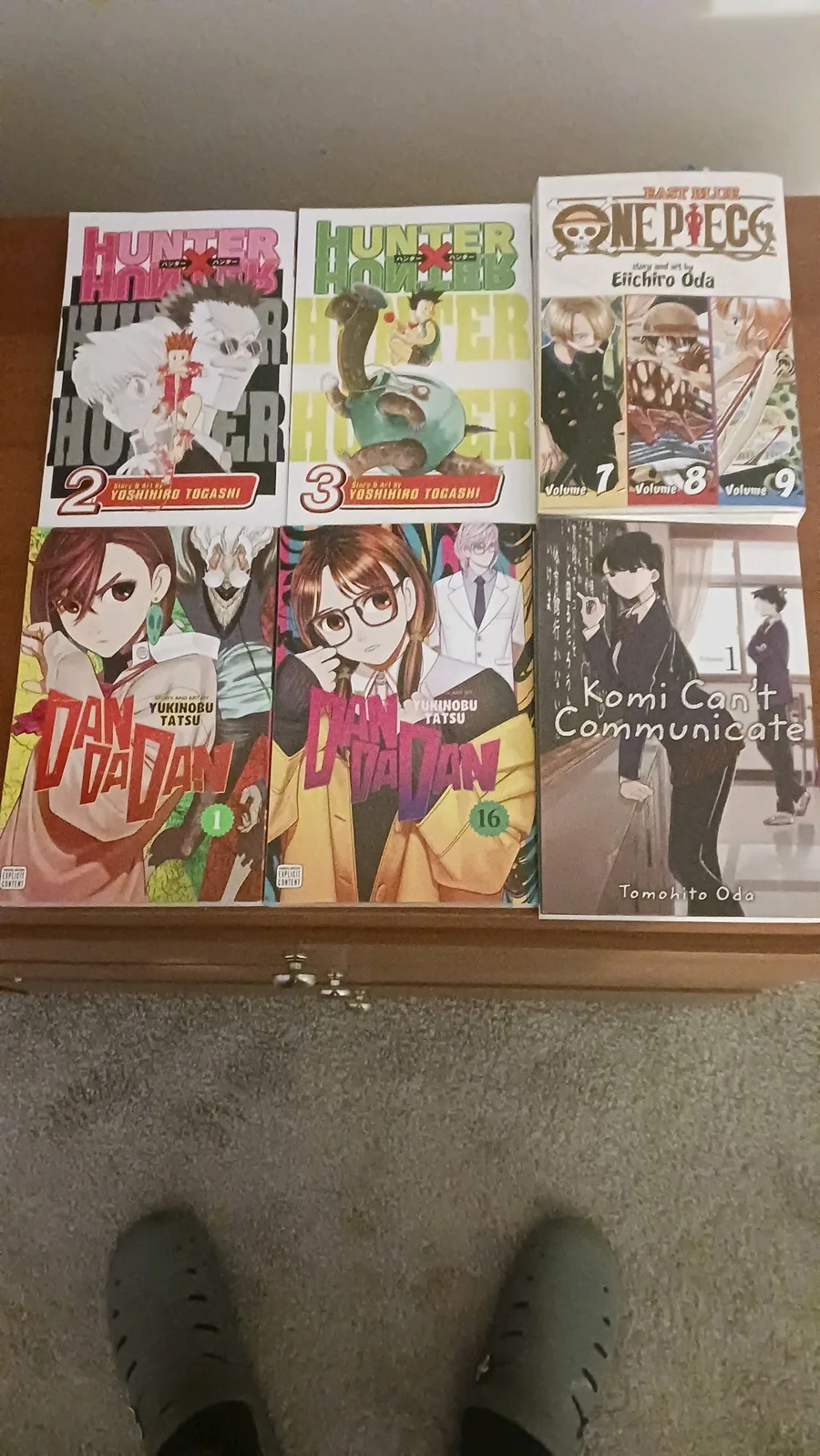 My #Mangacollection. I got 2 #HunterxHunter & #Dandadan & a #onepiece & a #komicantcommuicate #manga too. I'm going to start reading Manga again. #mangareader