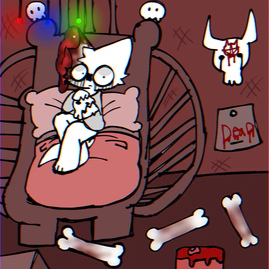 Cursed Flandre showing off her collection of people she killed before Christmas.