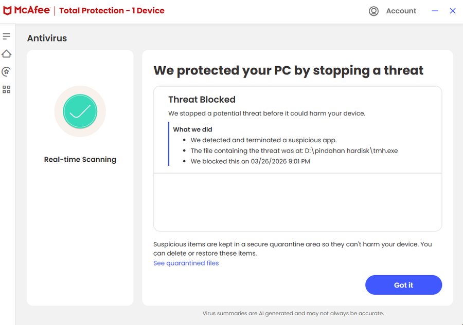 Not long after I played The Magic Hour, McAfee terminated my game and consider it as a threat, did I forget to connect my account to the game or what should I do?