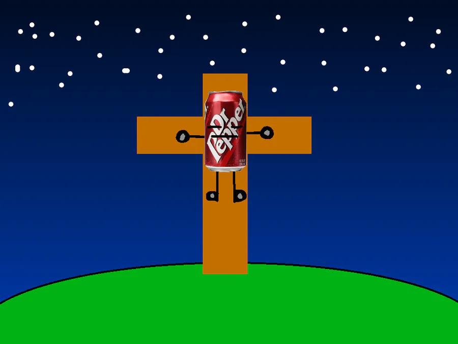 A NIGHT 1 DEMO IS OUT PLEASE FORGIVE ME FOR MAKING YALL WAIT SO LONG HERES AN IMAGE OF MY MASCOT GUY ON A CROSS PLEASE FORGIVE ME PLEASSEEE
