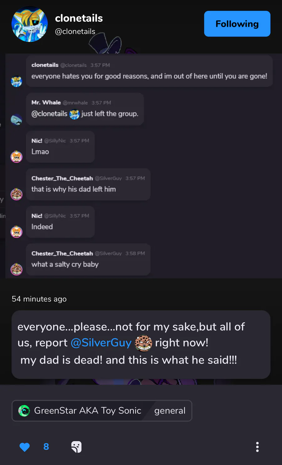 We can report him if you like, he did say some rude things.