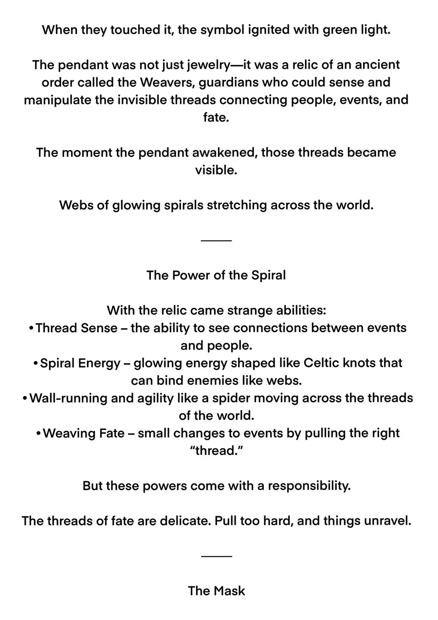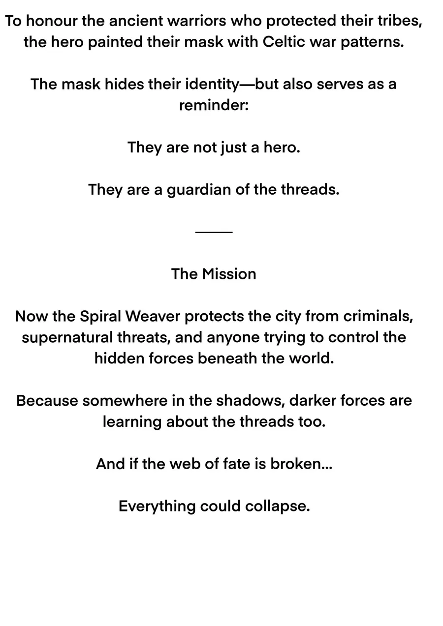 This is my spider persona and his backstory! Their mask is inspired by ancient Celtic war paint, and the actual suit itself is what I would actually wear. I hope you like it!