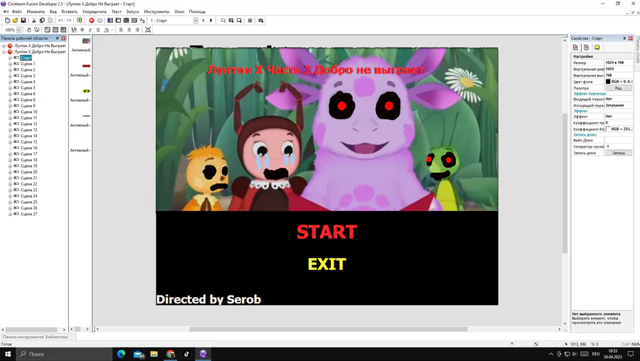 Всем привет дорогие друзья, у меня для вас новость, как вы знаете у меня в разработке игра Лунтик X Добро не Выиграет 5, ну так вот хочу кому нибудь передать разработку этой игры, потому-что мне лень Делать её дальше. кто хочет взять разработку пишите