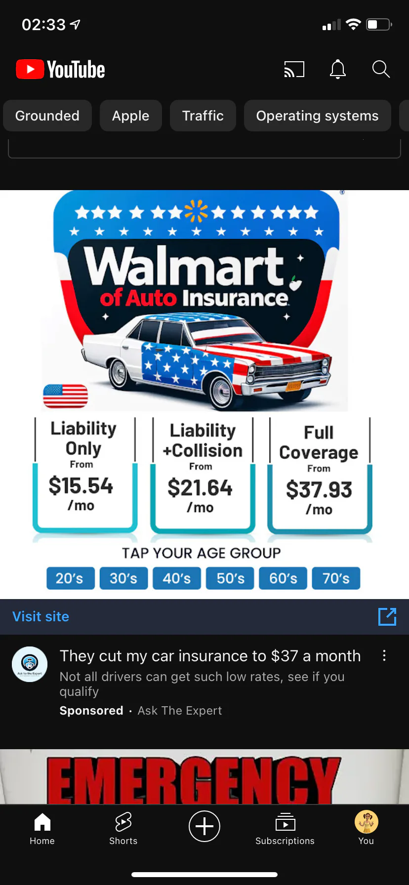 Oh wow. A picture on the YouTube sponsored have a car with an American flag and it says “Walmart of Auto Insurance”.