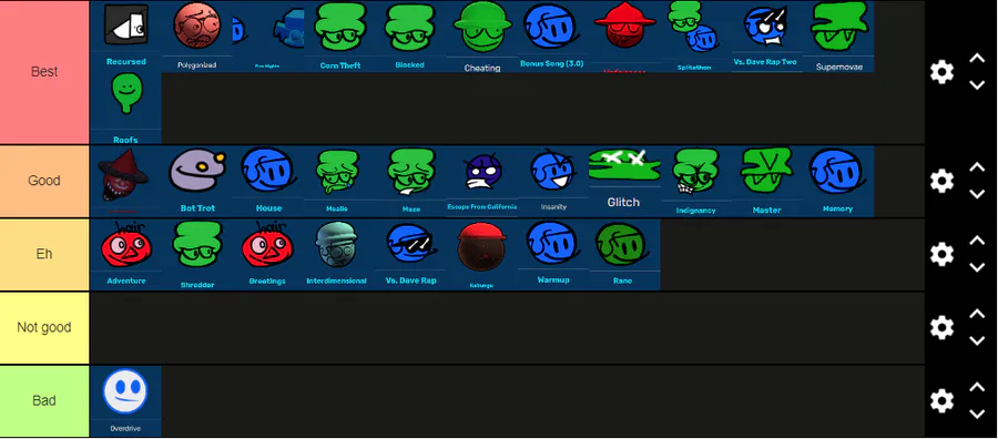 yeah another remake of my dave and bambi 3.0 song tierlist,cry about it