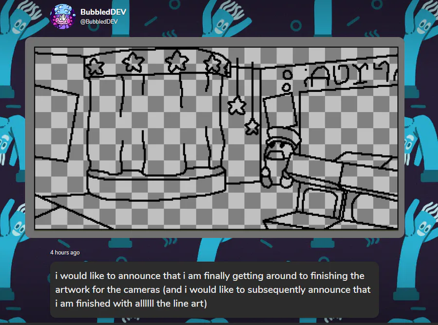 finished drawing all the characters for the cams today, playtesting is almost certainly gonna begin tomorrow or the day after!!!