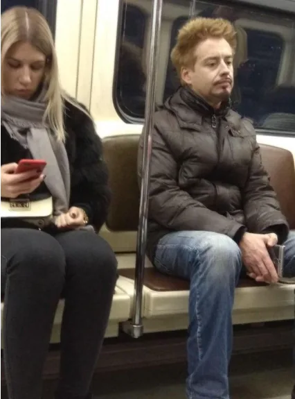 Robert Downey Jr. (Tony Stark) lookalike on the subway train