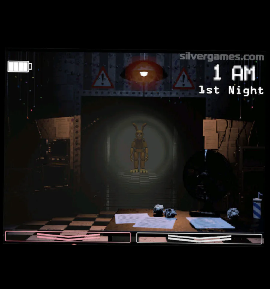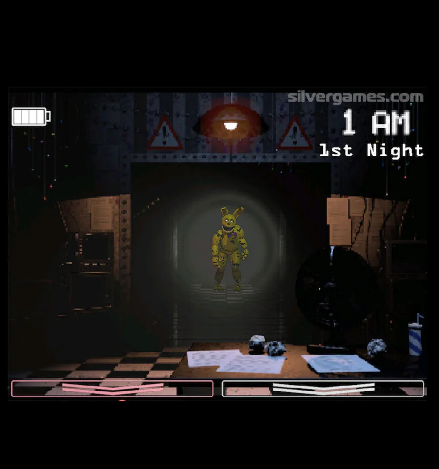 In Fnaf 1 into the pit and in fnaf 2 withered fredbear and into the pit