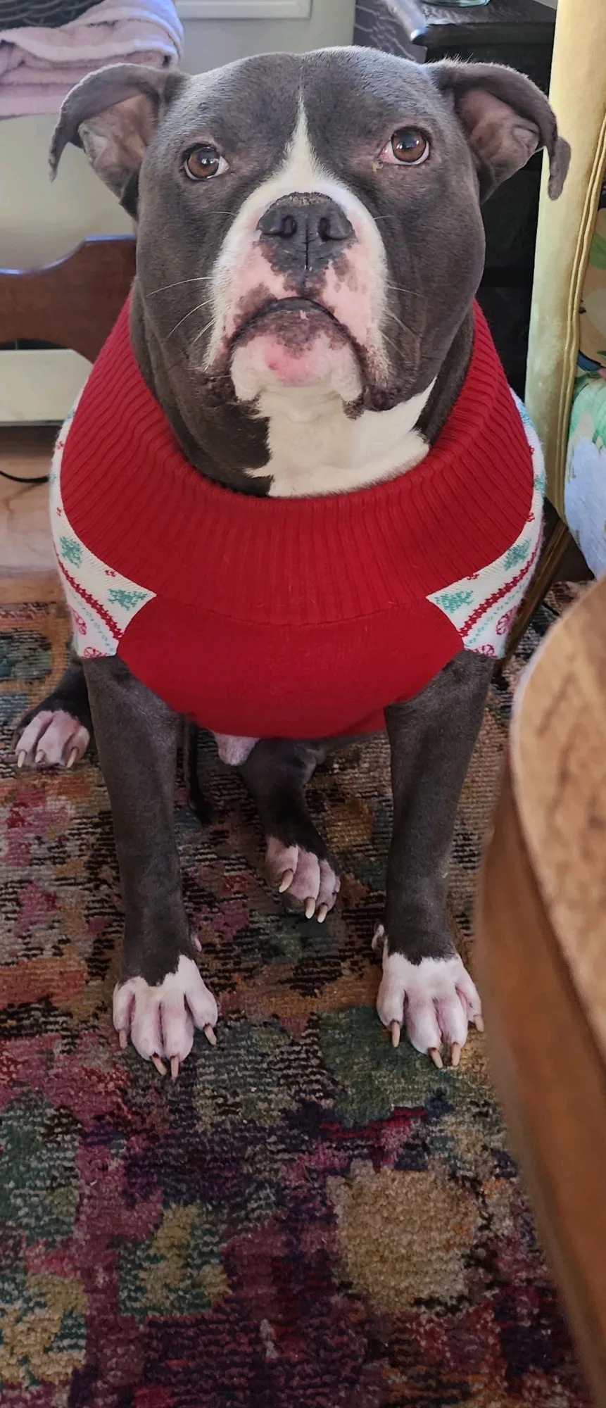 My dog wears sweaters, he's so stylish isn't he