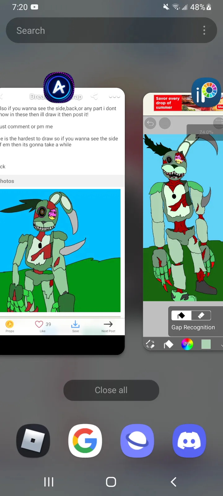 Dead springtrap redraw,hes part of a group of animatronics I made called The Dreaded Ones,this is the main villain,he controls the main four