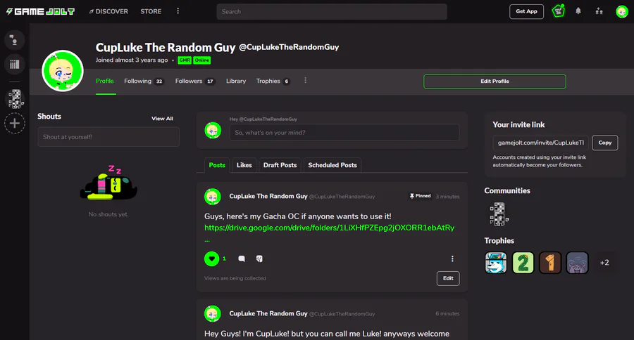 Hey Guys! I'm CupLuke! but you can call me Luke! anyways welcome to my Game Jolt where I can post my Games and stuff!