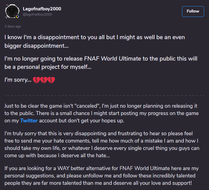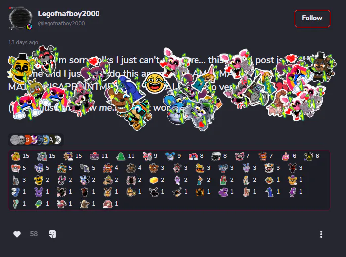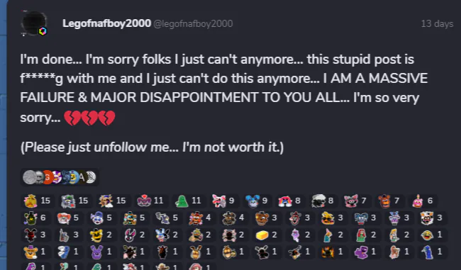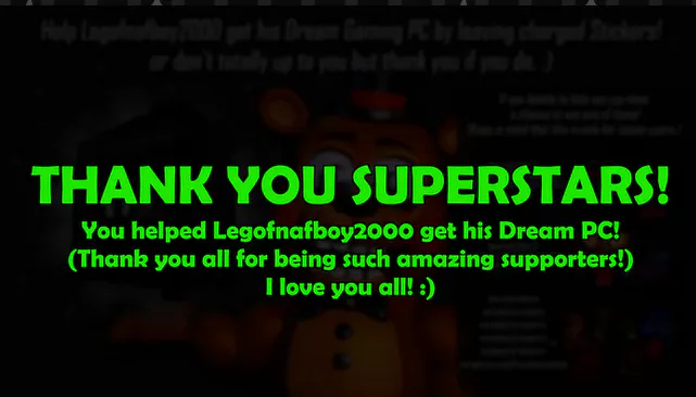 The incredible strategy. Ask for enough money for a new PC to work on your fangame with nothing to show. Then never work on it and make mopey, attention grabbing posts for more charged stickers!!