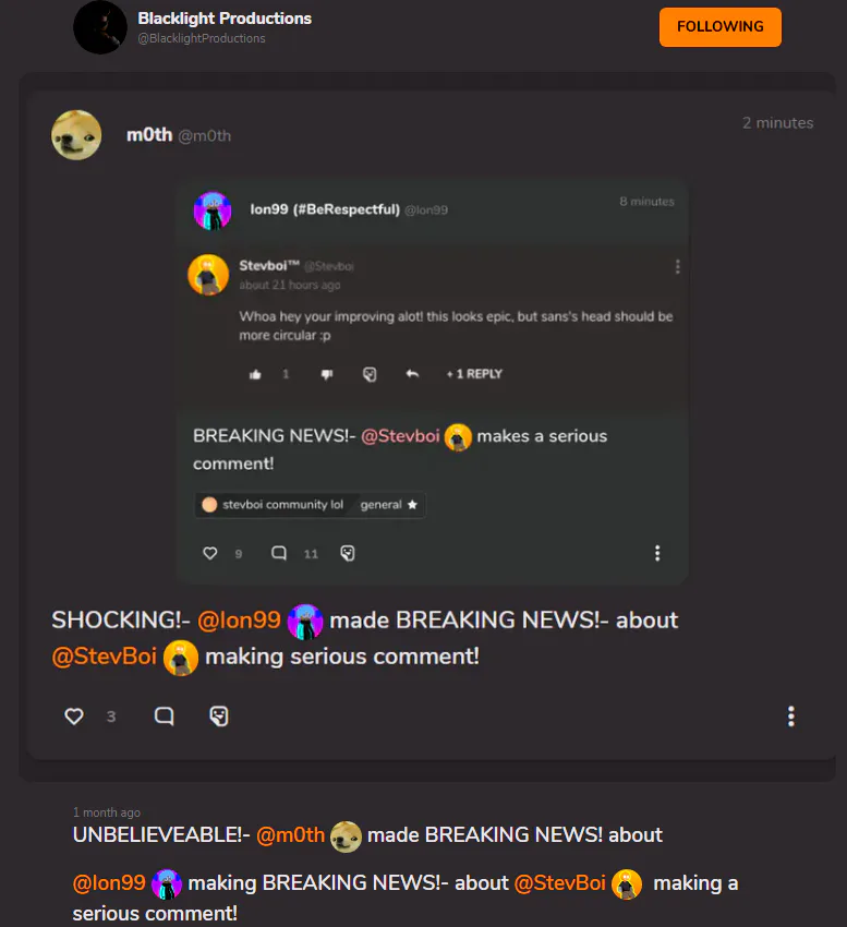 @m0th making BREAKING NEWS!- about @Ion99 making BREAKING NEWS!- about @StevBoi making a serios comment!