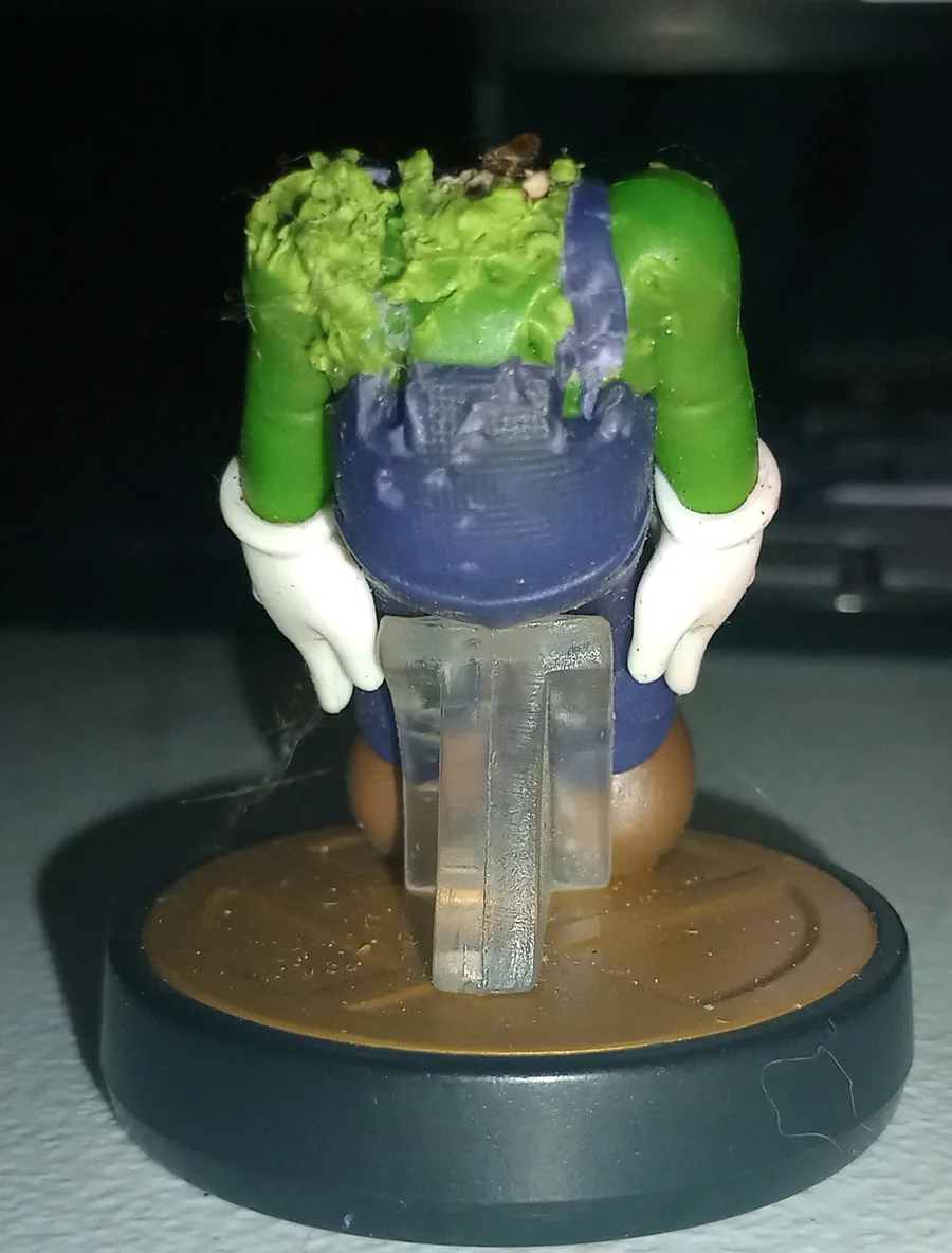 do you guys like what i did to my luigi amiibo when i was like 7 he's called withered luigi