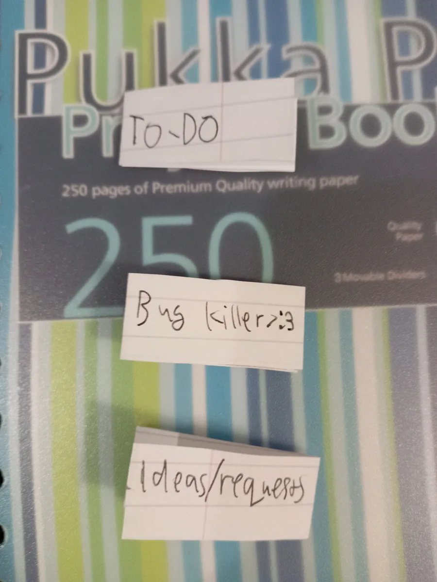 Repurposed my book which has 3 categories/tabs!