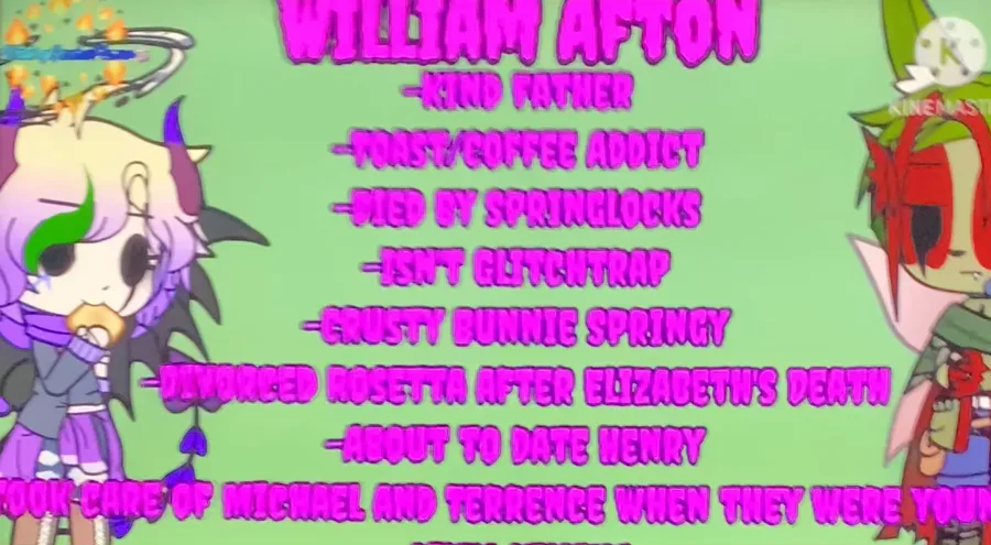 I’m Willam afton I have a YouTube channel it’s called Jayden Watson I like fnaf I do fnaf drawings I do Minecraft drawings and a another channel called zombiefilms 909 and I do video games like fnac and fnaf games go wach my videos my channel is called Jayden Watson