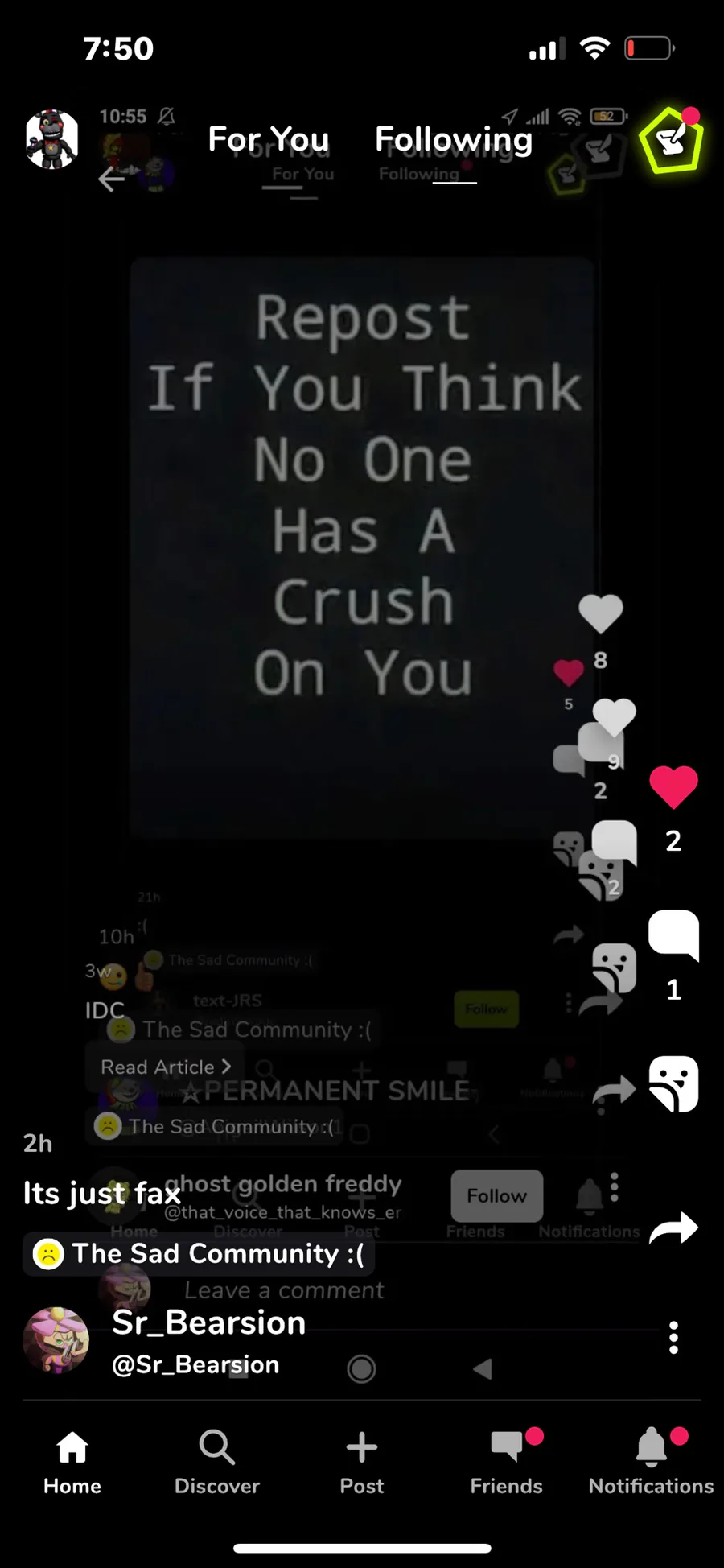 Tak a screenshot and post this if you like FNaF 1-9 (FNaF 9 is sb)