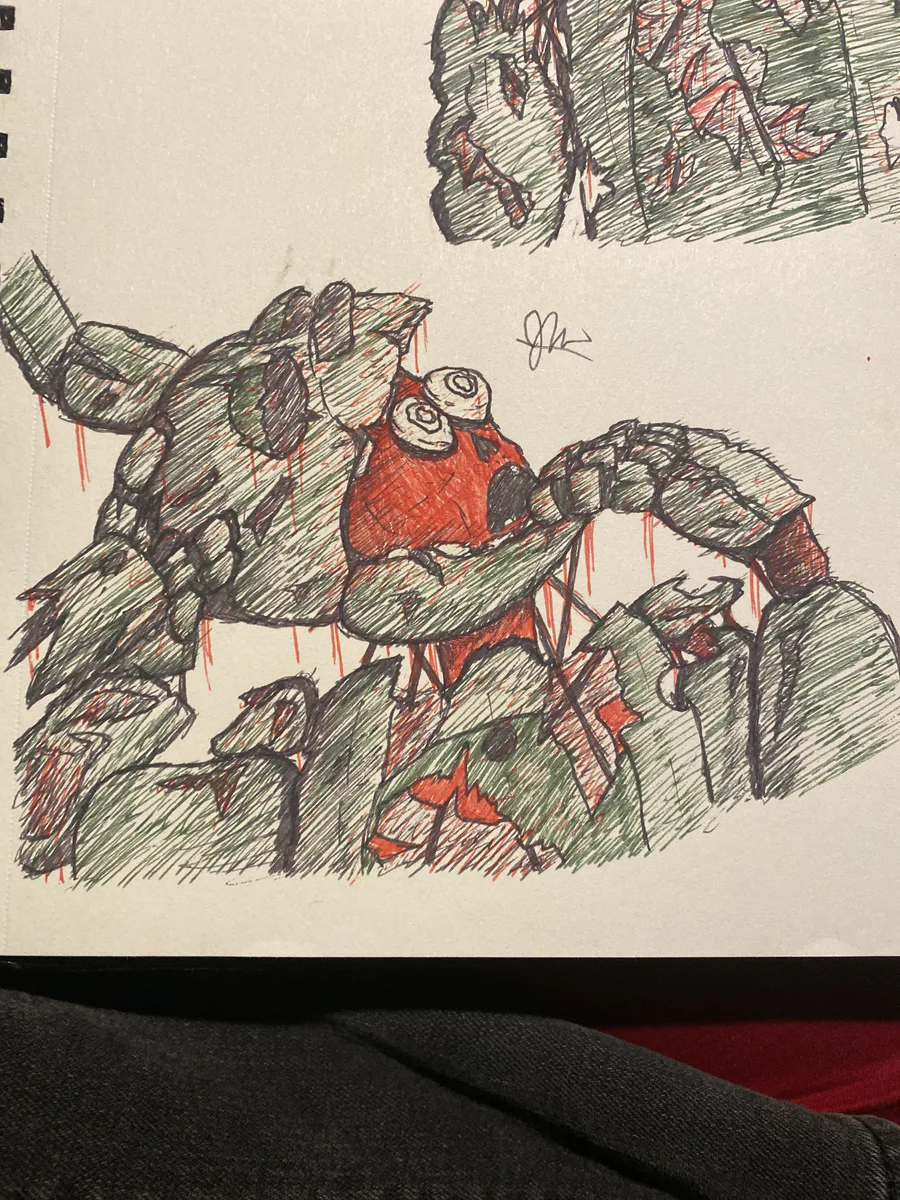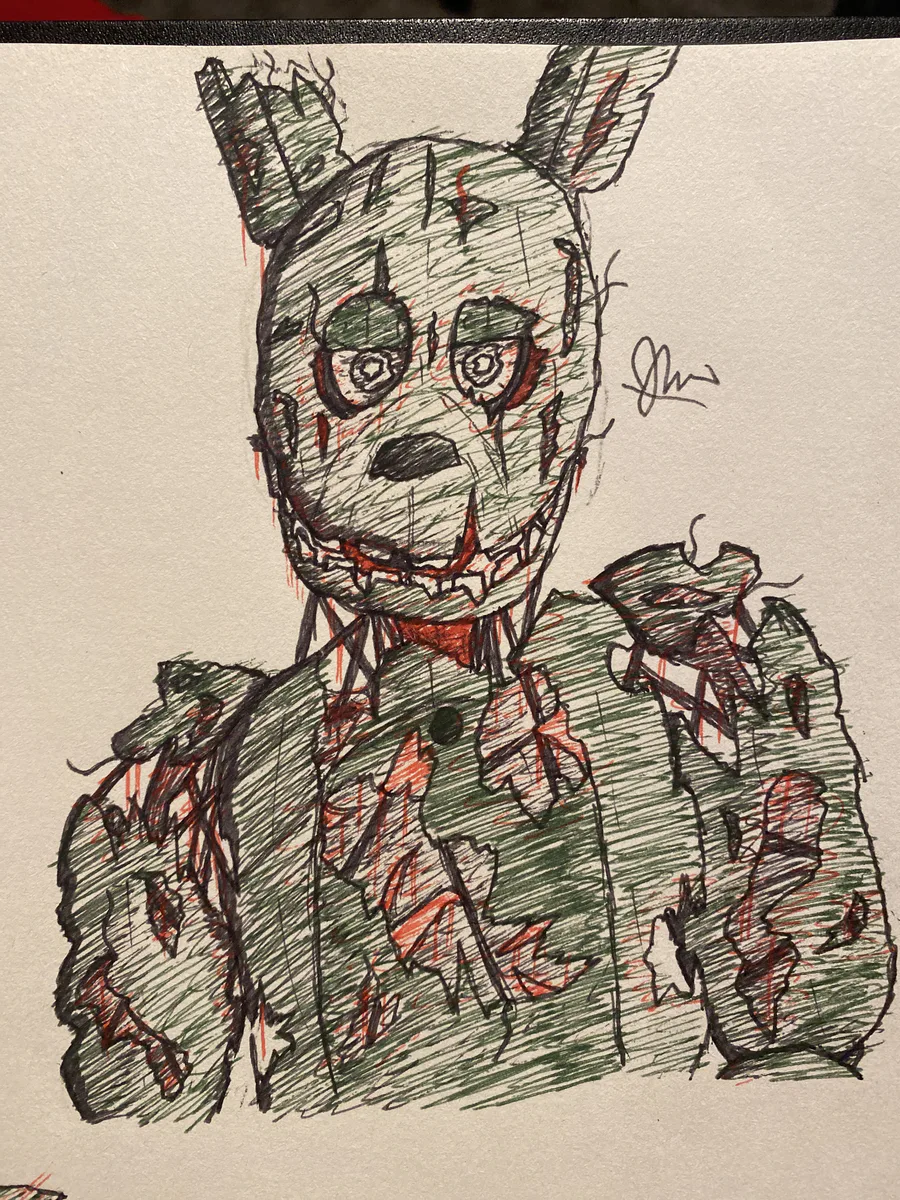 Drawing of Springtrap, my favorite animatronic. He is like a zombie animatronic which I think is cool, also does anyone else believe that Nightmare is William?