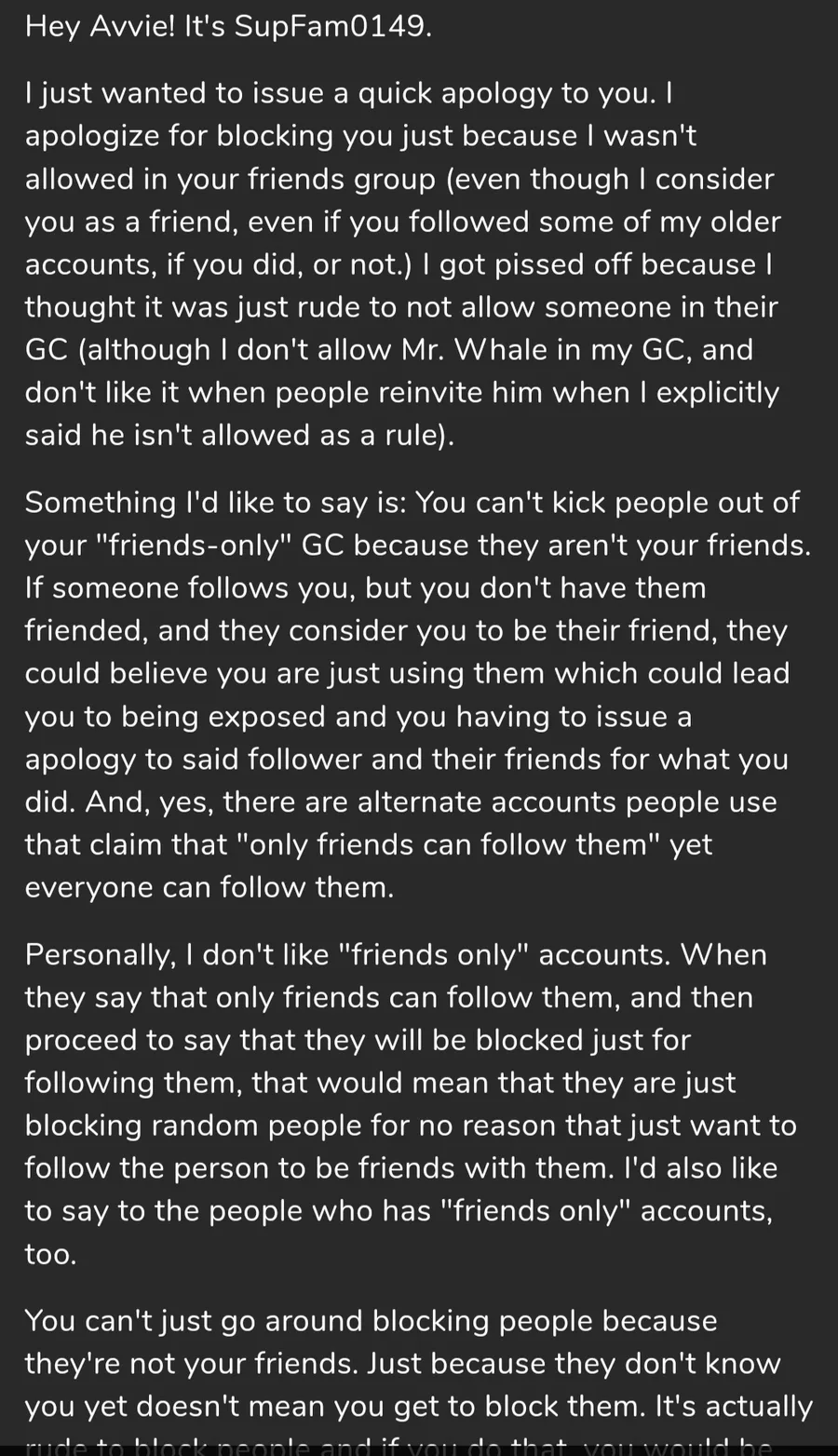 Please, for the LOVE OF GOD, do not type the name of a character/OC like your talking for them (Example: "𝝙vvie: ██████ ") I'm only pointing this out to people who do it ALL THE TIME, if you do it time to time for cosplays n stuff with no backup images, its fine. (@Marcusthestarman_mobile
