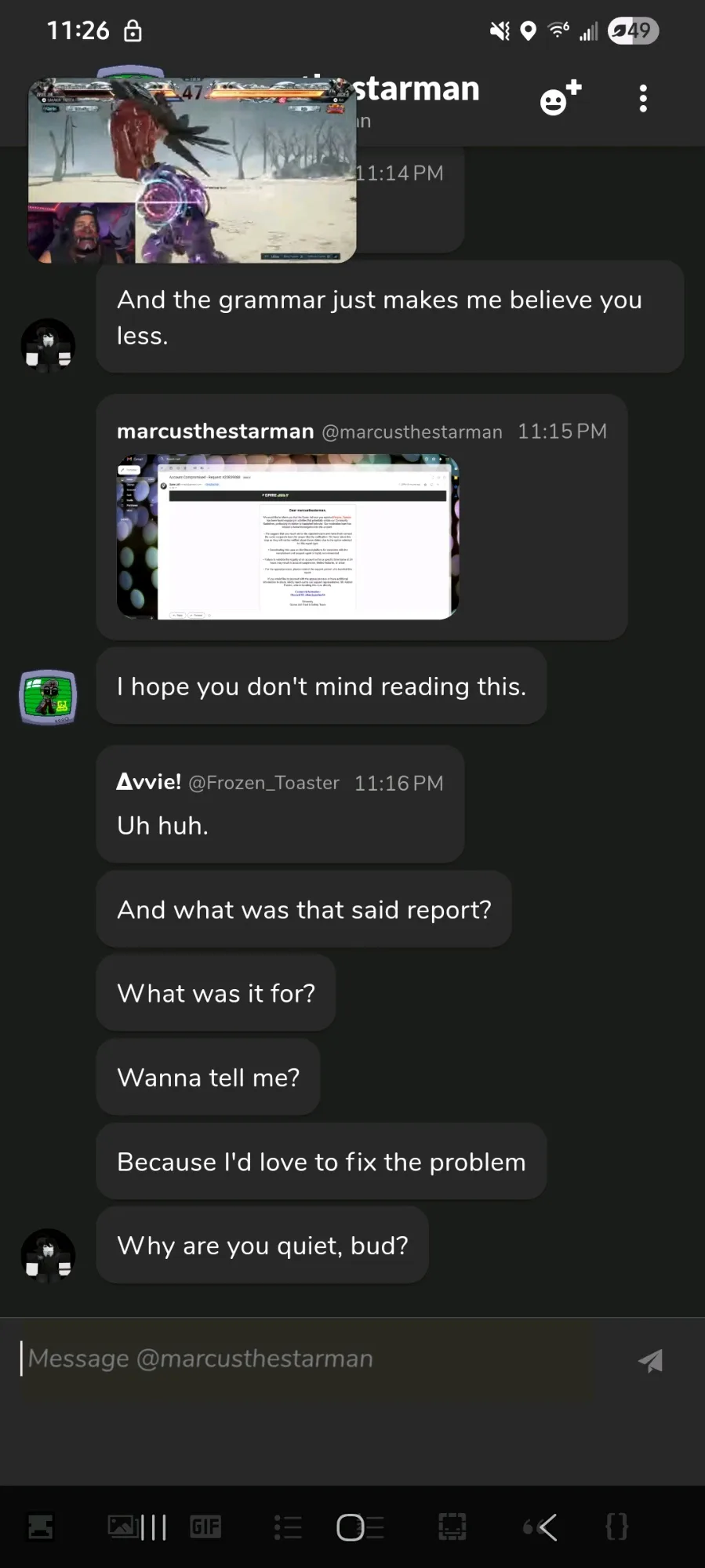 Please, for the LOVE OF GOD, do not type the name of a character/OC like your talking for them (Example: "𝝙vvie: ██████ ") I'm only pointing this out to people who do it ALL THE TIME, if you do it time to time for cosplays n stuff with no backup images, its fine. (@Marcusthestarman_mobile