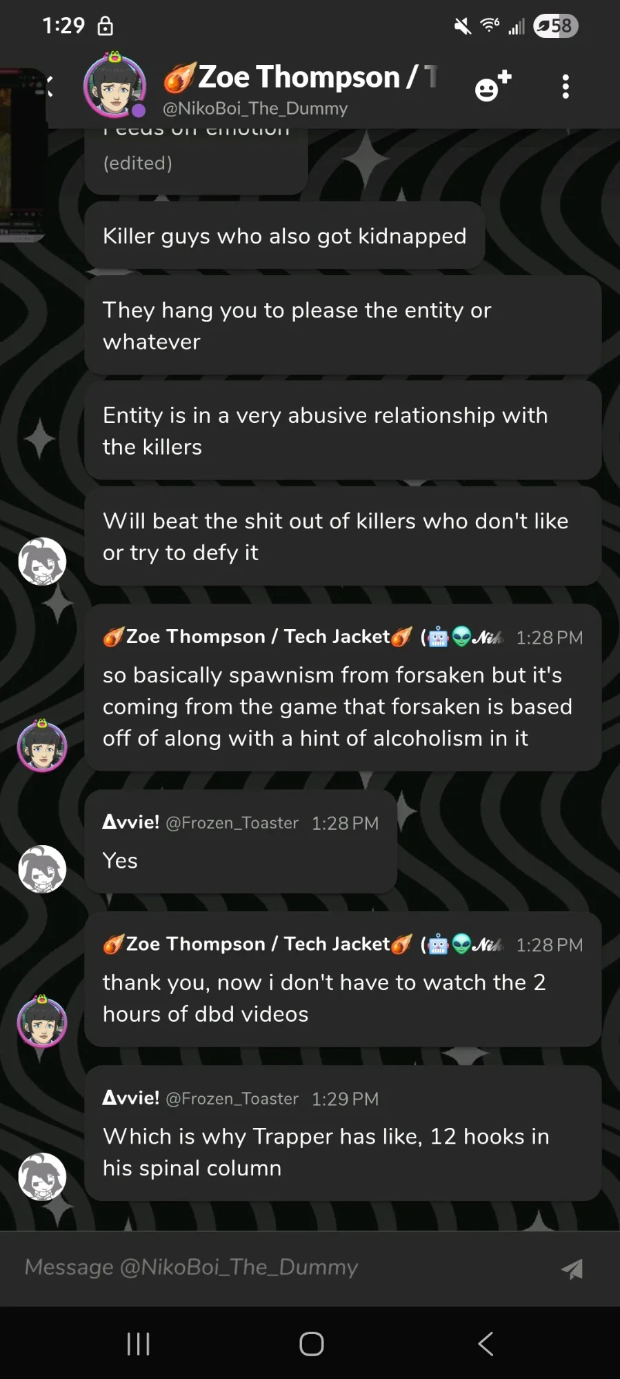 (Context: I was explaining Dead by Daylight to them in a nutshell)