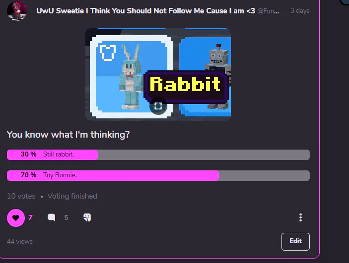 UwU Sweetie I Think You Should Not Follow Me Cause I am <3 @Funtime_Hybirda
