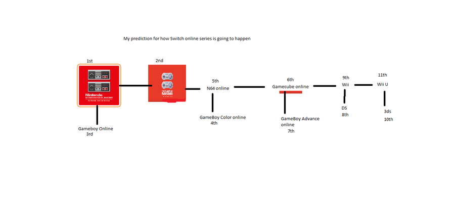 Basically how i predict nintendo is going to release the switch online services (note at first i thought it was gonna be the gameboy but then as soon as SNES online came out i put the gameboy online 3rd)