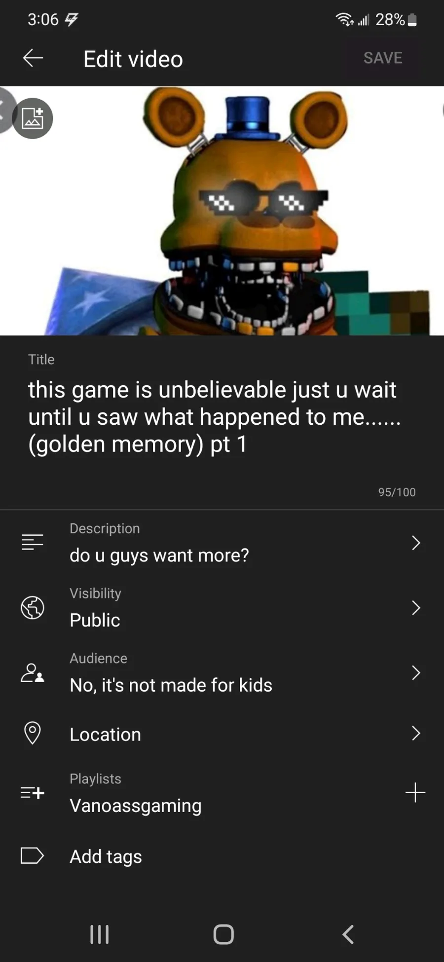 this game is unbelievable just u wait until u saw what happened to me......(golden memory) pt 1