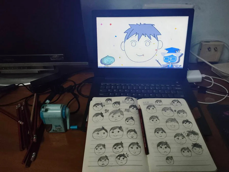 练习画画的第二天,心得——今天主要尝试了将人脸朝向从正面往侧面转,这节课我打算花一个星期去练习,我不怕练的慢,只要能坚持就一定可以成功!