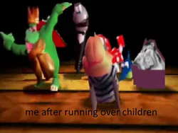 happily running over children and monkeys