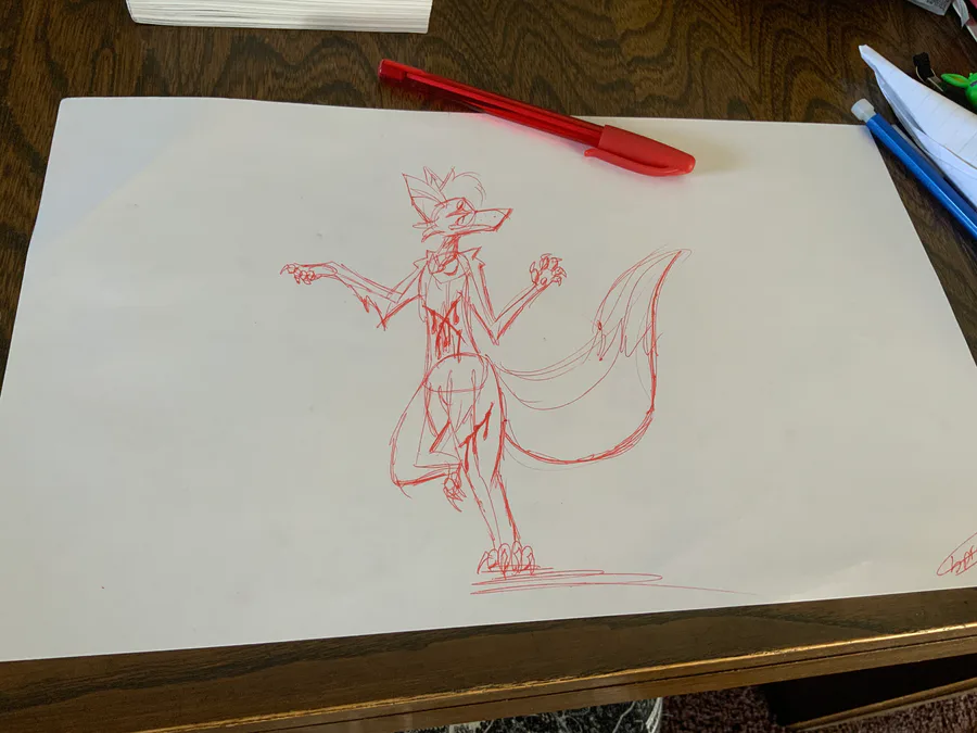 my character but drawing in red pen