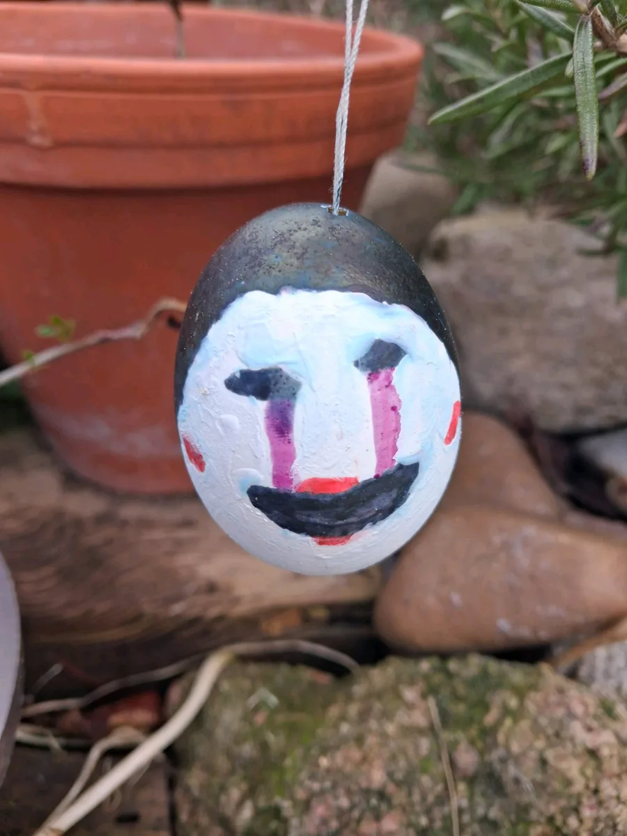 The egg in this picture was painted a long time ago, and lost it color after one day of hanging outside lul