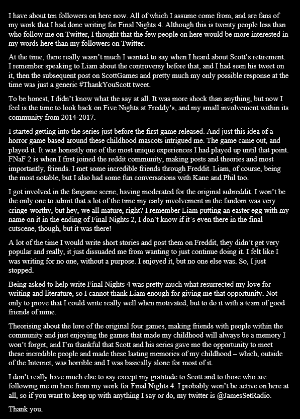 A little thing for those who stumble across my page and a thank you to Scott Cawthon for the last seven years.