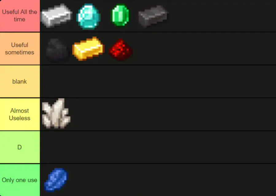 Ore tier list (as of 1.16)