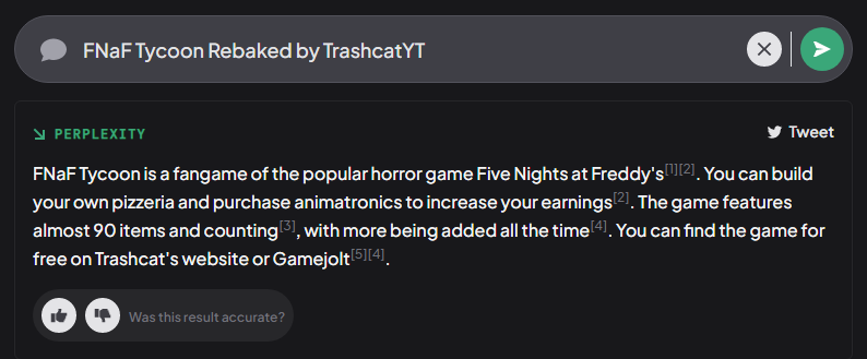 Been playing around with Perplexity ai and asked it what fnaf tycoon rebaked is