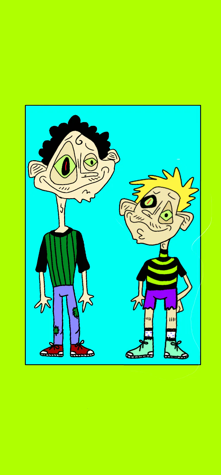 the first drawing is my persona "Skip" their backstory is, created by an evil professor, he wanted to make 5 perfect beings, to rule and take over the world, they all were coded and were raised by him, but in his eyes skip was a failure, Too little n weak