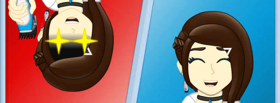Hello, I hope you are well. My name is MadisonHaircuts, and I am someone who draws hair-themed artwork and also develops video games. Here are some images from my current project called CutDices